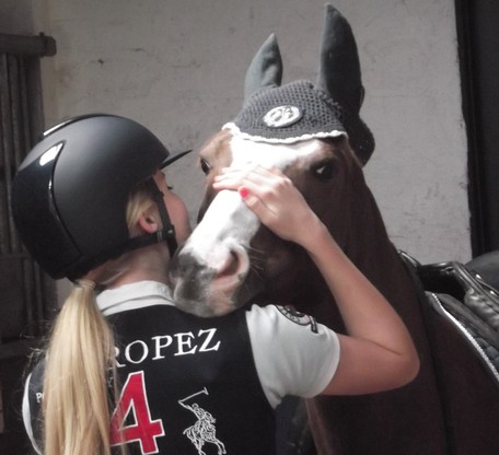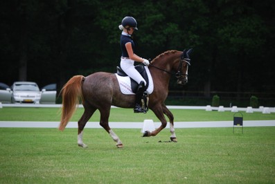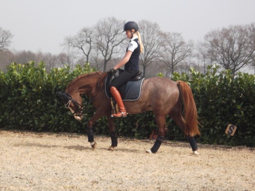 Daarna was Bo aan de beurt. Bij het inrijden had Bo er aardig zin in, maar ik heb de spanning weg kunnen galopperen en daarna was hij heel erg rustig en liep super fijn. Ook in de baan was hij verbazingwekkend relaxed! De proef ging ook super fijn en we maakte nagenoeg geen fouten. Ik denk dat dit een van de beste proeven tot nu toe was! De score was uiteindelijk 63,8% (63,0%, 63,2% en 65,1%), wat misschien wel iets meer had mogen zijn, maar ik ben super tevreden! Als je op zo'n kampioenschap in een ontzettend sterk deelnemersveld een van je beste proeven neer kan zetten dan mag je daar volgensmij best heel trots op zijn! Tussen alle kaderleden en EK ruiters behaalden we 19e plaats, dus nu kan ik officieel zeggen dat ik 19e ben van alle ponyruiters in heel Nederland! Het was een super leuke en gezellige dag! Ook leuk was dat alle 3 de meisjes die ik les geef waren komen kijken! Ik kijk met een heel goed gevoel terug over deze dag. Natuurlijk hebben we ook nog mooie foto's en de proeven zijn gefilmd!
