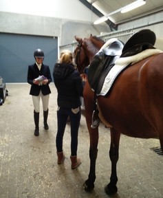 11. Na de proef van mijn moeder hebben we even warme chocolademelk gedronken. Daarna ben ik weer naar de stallen gegaan om Dido alvast te vlechten en klaar te maken voor het baan verkennen.