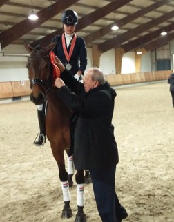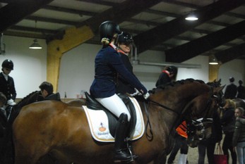 's avonds moest mijn moeder rijden in de klasse B met Warrior. Ze reden een hele mooie proef zonder fouten! In de grote rubriek van 32 deelnemers wisten zij kringkampioen te worden met 210 en 200 punten! Ook zij mogen naar de Overijsselse kampioenschappen. De kampioenschappen voor de klasse B worden verreden op 20 februari in Saasveld.